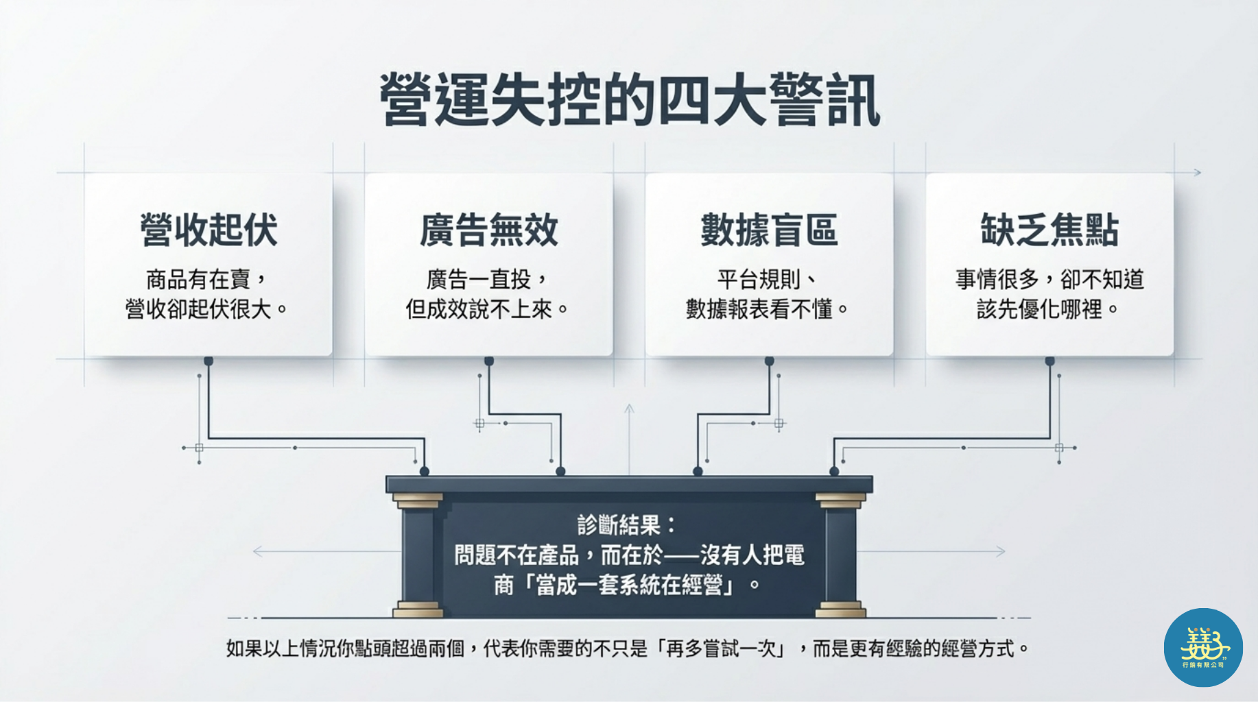 營運失控的關鍵不在產品,而是缺乏系統化經營。把問題拆解、用數據修正,才能讓營收真正穩定成長。